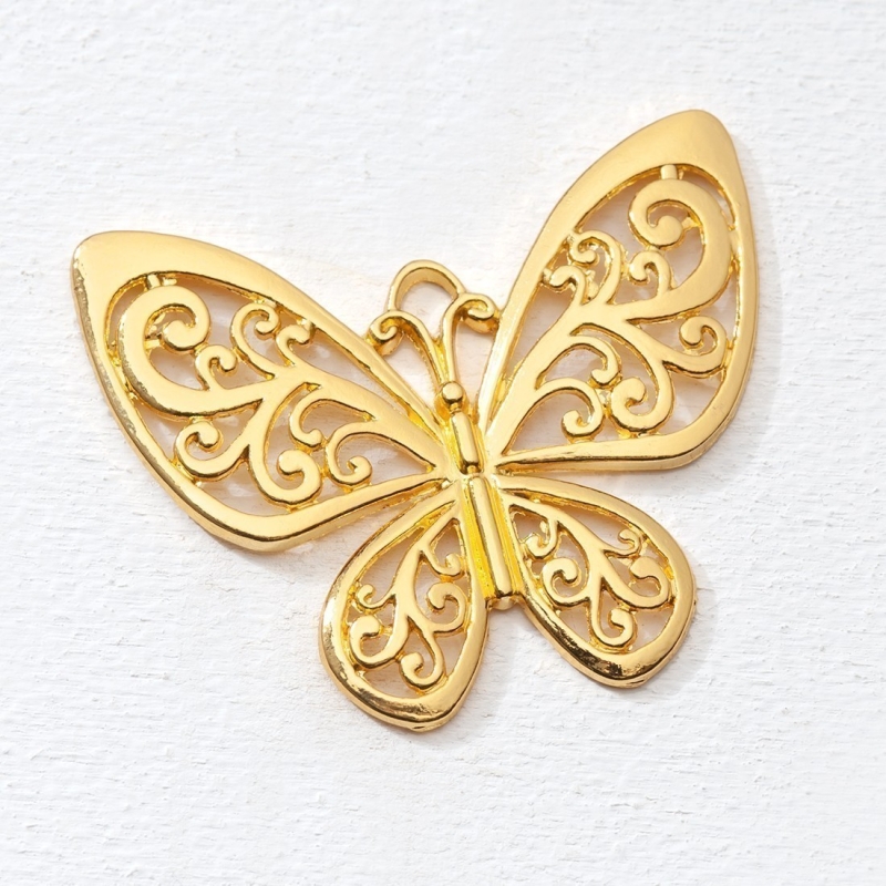 Μεταλλική κρεμαστή διακοσμητική πεταλούδα σε χρώμα χρυσό. Κατάλληλο για διακοσμήσεις και χειροποίητες κατασκευές. Η συσκευασία περιέχει 10 τεμάχια.