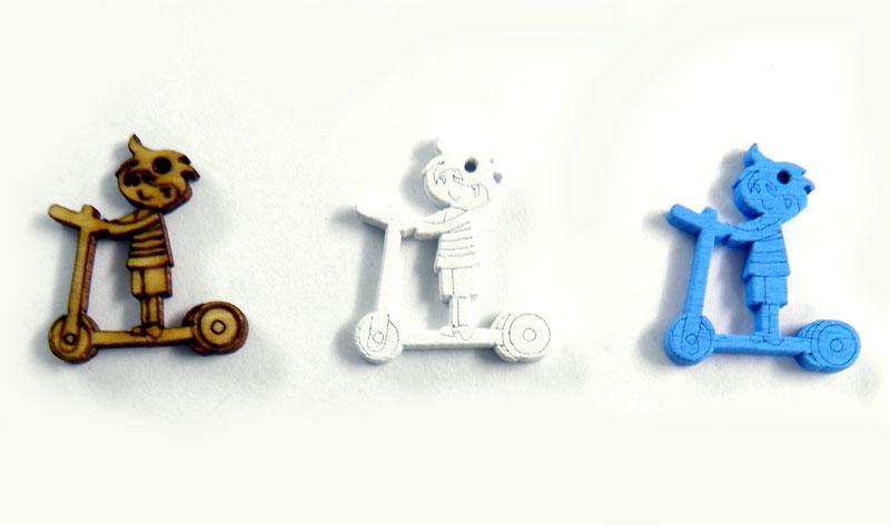 Ξύλινο Διακοσμητικό αγοράκι με πατίνι σε 3 αποχρώσεις με διάσταση 2.5 εκ. Ελάχιστη παραγγελία 100 τεμαχίων.