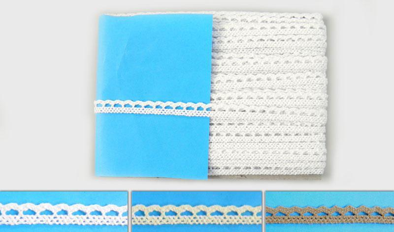 Κορδέλα Δαντέλα βαμβακερή 0.7 εκ x 18 μέτρα σε 3 αποχρώσεις.