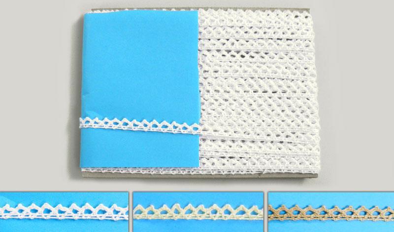 Κορδέλα Δαντέλα βαμβακερή 0.7 εκ x 18 μέτρα σε 3 αποχρώσεις.