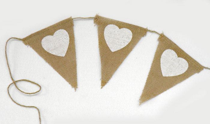 Βάπτιση και Γάμος | Σημαιάκια Λινάτσα καρδιά (0517797)