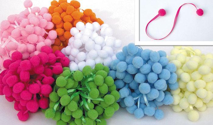 Πον Πον με κορδέλα μικρό σε διάφορα χρώματα. Με διάσταση 20 εκ κορδέλα και 1.3 εκ πον πον. Σε συσκευασία 50 τεμαχίων. Η τιμή αφορά το τεμάχιο.