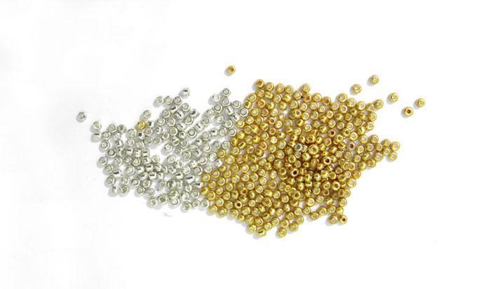 Χάντρα Μεταλλική ψείρα σε 2 αποχρώσεις με διάμετρο 2 mm και τρύπα 0.5 mm. Η τιμή αφορά πακέτο 30.000 τεμαχίων.