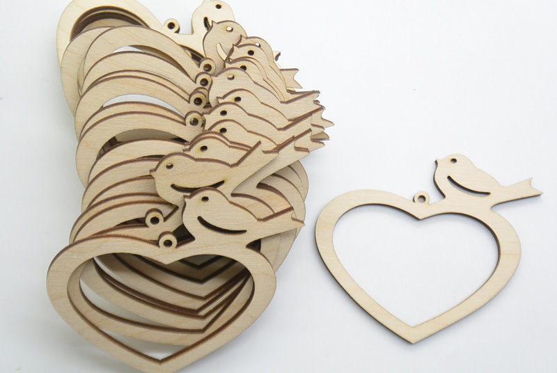 Ξύλινο Διακοσμητικό καρδιά με πουλάκι σε φυσικό άβαφο με διάσταση 8 x 7 εκ. Συσκευασία 50 τεμαχίων. Η τιμή αφορά το τεμάχιο.