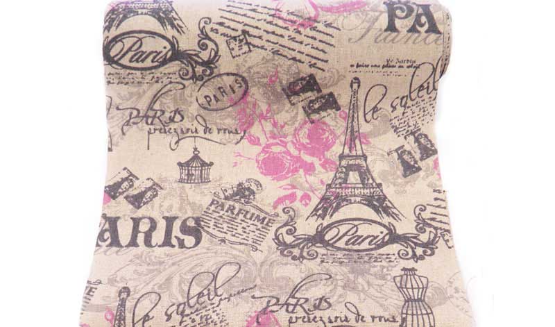 Ρολό Καραβόπανο με θέμα Παρίσι και ροζ λεπτομέρεια. Διάσταση 24 εκ x 4.6 μέτρα.