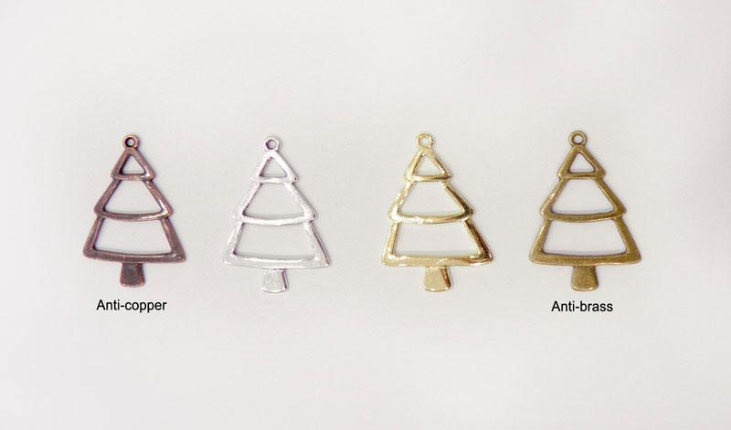 Μεταλλικό Χριστουγεννιάτικο δέντρο σε διάφορες αποχρώσεις. Διάσταση 4 x 2.8 εκ. Το πακέτο περιέχει 50 τεμάχια. Η τιμή αφορά το τεμάχιο.