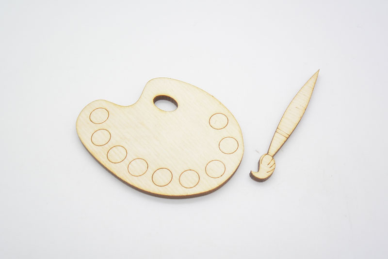 Ξύλινο Διακοσμητικό σετ ζωγραφικής σε φυσικό άβαφο με διάσταση παλέτας 6 x 5.4 εκ και πινέλου 1 x 7 εκ . Συσκευασία 50 τεμαχίων. Η τιμή αφορά το τεμάχιο.
