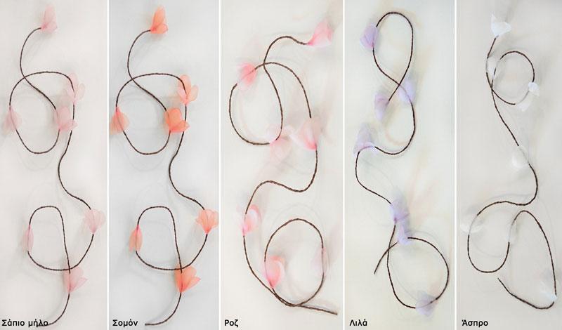 Κορδόνι με φυλλαράκια σε 5 αποχρώσεις. Διάσταση 1 μέτρο.