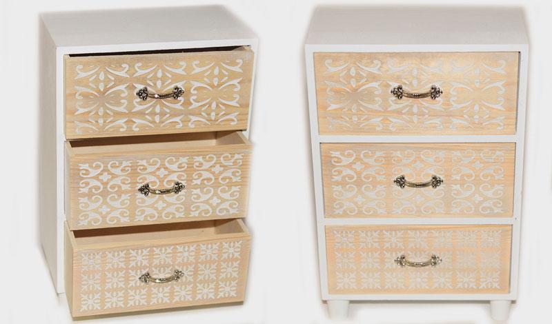 Ξύλινη Συρταριέρα με ανάγλυφο σχέδιο και διαστάσεις 20 x 12.5 x 30.5cm.