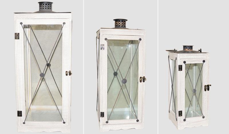 Ξύλινο Φανάρι μεγάλο σετ 3 τεμάχια κατασκευασμένο με μέταλλο και γυαλί. Διαστάσεις μεγάλου 25cm x 25cm x Y71cm, μεσαίου 19,5cm x 19,5cm x 49cm και μικρού 14cm x 14cm x 35cm.