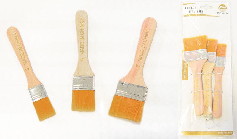 Σετ 3 Πινέλα χειροτεχνίας φαρδιά πλακέ. Μεγέθη 3-5-7. Πριν τα χρησιμοποιήσετε πρέπει πρώτα να τα βρέξετε και μετά να τα σκουπίσετε για να αφαιρεθεί η πολύ υγρασία. Μετά από κάθε χρήση θα πρέπει να τα ξεπλύνετε με άφθονο νερό. Για βάψιμο.
