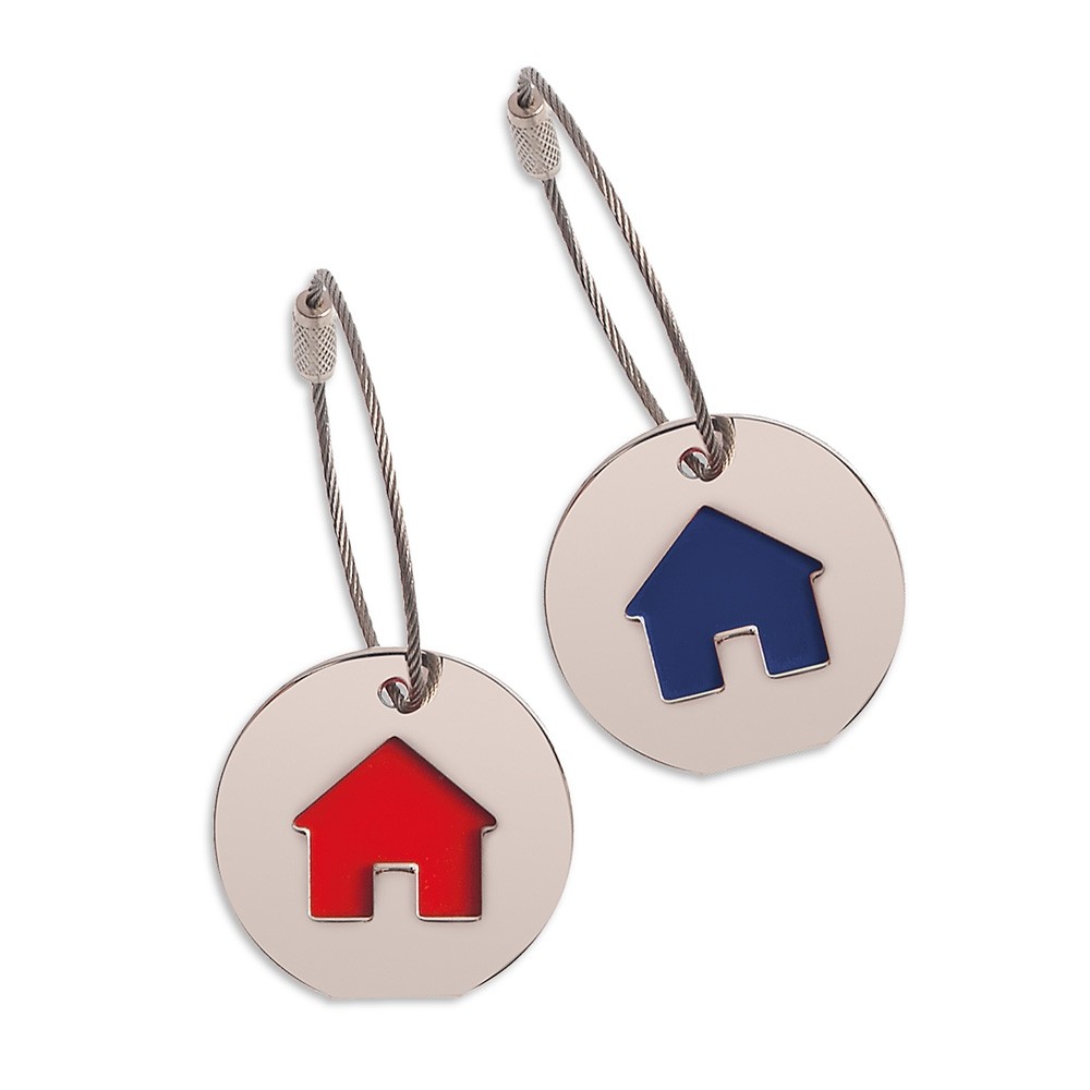 Μεταλλικό στρογγυλό παιδικό μπρελόκ με σπιτάκι μπλε ή κόκκινο, ιδανικό για διακοσμήσεις και κατασκευές