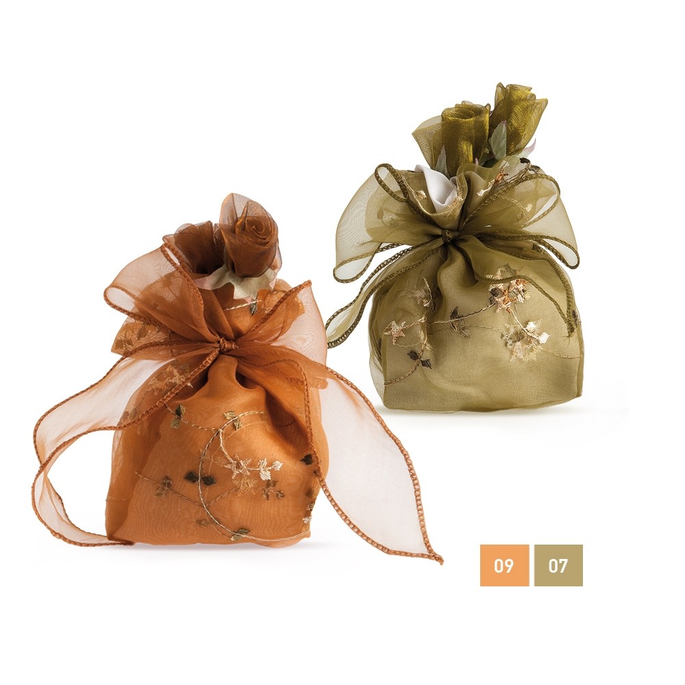 Πουγκί από οργάντζα σουρωτό με κεντημένο λουλούδι και λουλούδι από οργάντζα