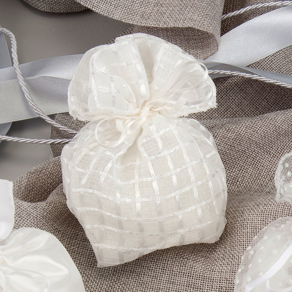 Πουγκί λινό σχέδιο καρό εκρού σουρωτό