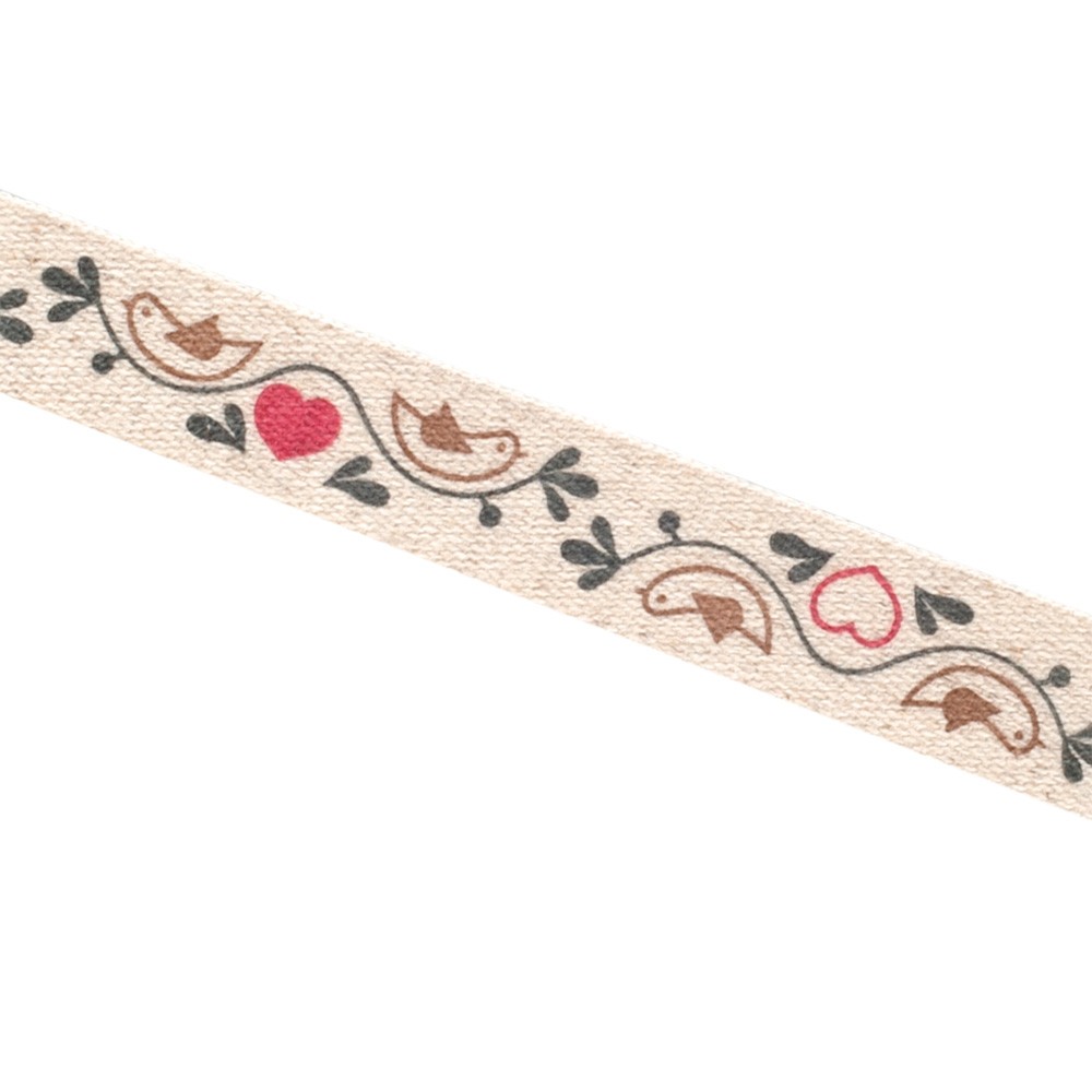 Κορδέλα βαμβακερή εκρού print με πουλιά