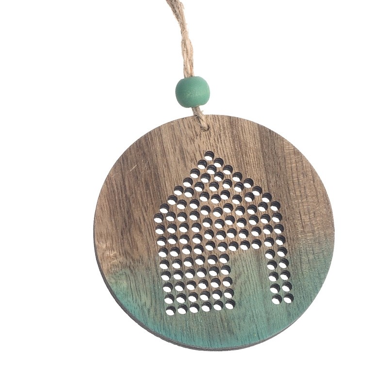 Ξύλινο κρεμαστό print σπιτάκι σε natural και βεραμάν αποχρώσεις.