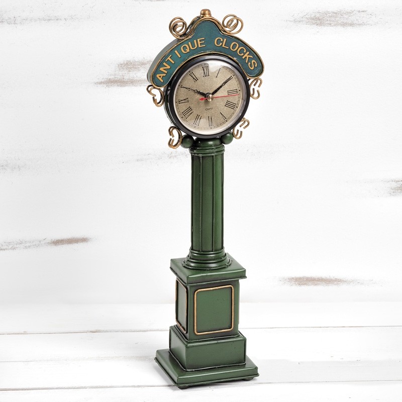 Vintage μεταλλική αντίκα.Διακοσμητικό φανάρι βικτωριανού τύπου με ρολόι σε πράσινη σκούρα απόχρωση.