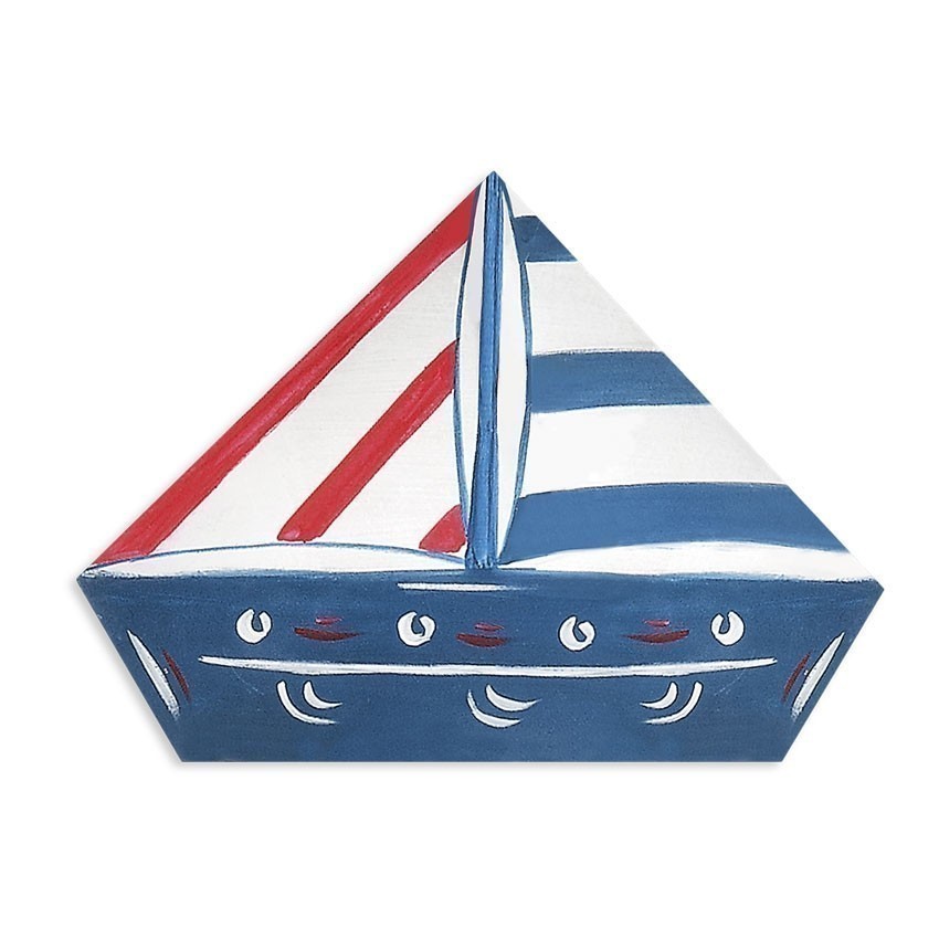 Ξύλινη παράσταση καράβι σε μπλε-κόκκινο χρώμα, ιδανική για διακοσμήσεις και κατασκευές
