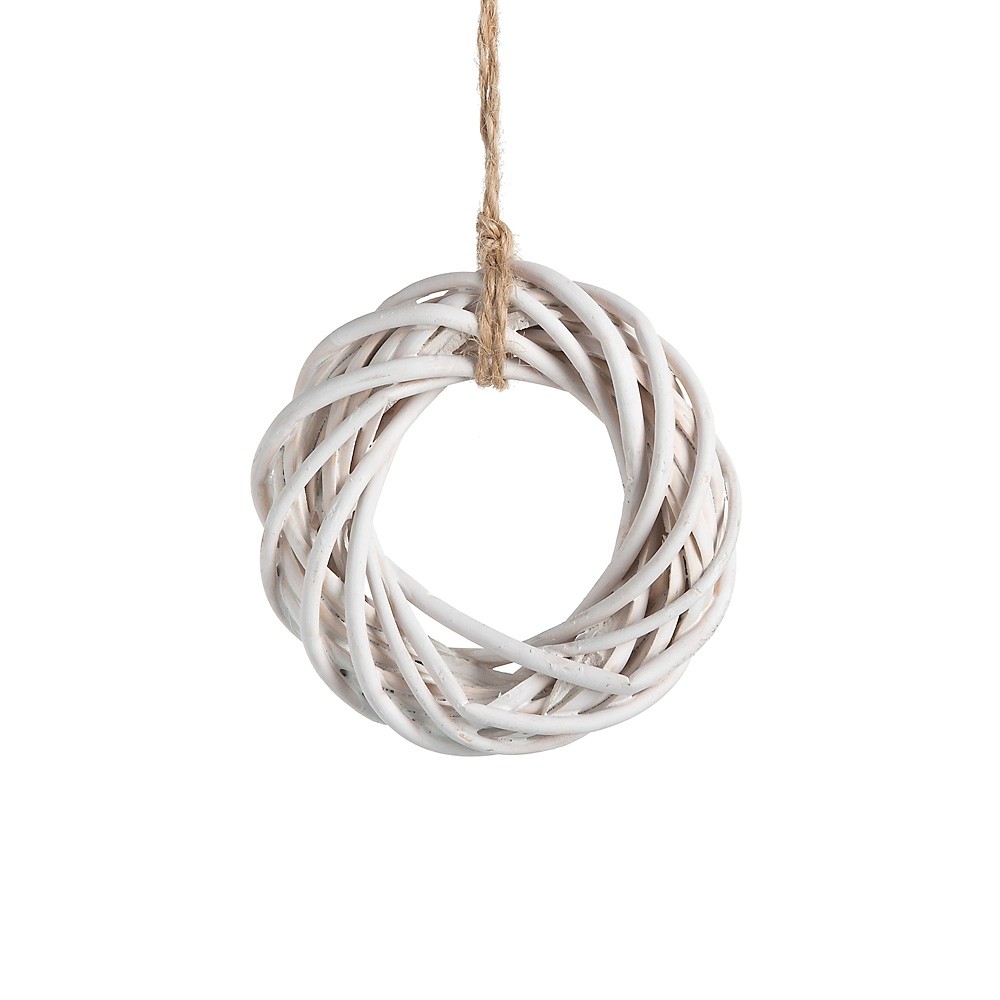 Διακοσμητικό κρεμαστό στρογγυλό στεφανάκι 2.5x8cm από ξύλο μπαμπού σε χρώμα λευκό. Ιδανικό για διακόσμηση.