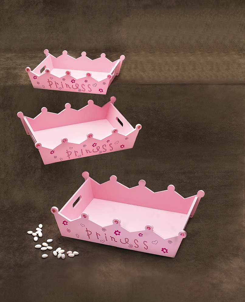 ΞΥΛΙΝΑ ΠΑΝΕΡΙΑ ΒΑΠΤΙΣΗΣ ΡΟΖ "PRINCESS" ΣΕΤ 3 ΤΕΜΑΧΙΑ 50x33x12 44x29x11 39x25x10