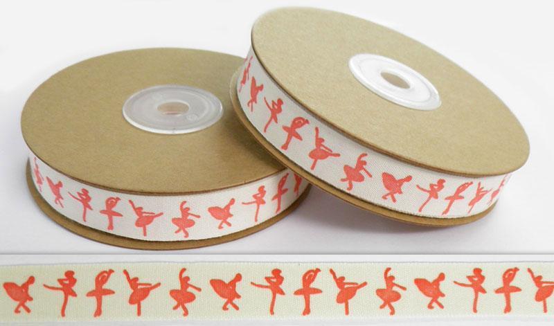 Βαμβακερή Κορδέλα με σχέδιο μπαλαρίνα με διάσταση 1.5 εκ x 18 μέτρα.