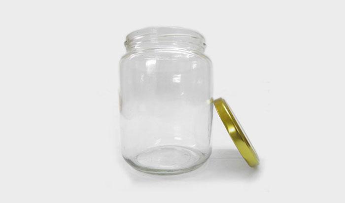 Βάζο 480ml με χρυσό καπάκι και διάσταση 8 cm x 11.5 cm.