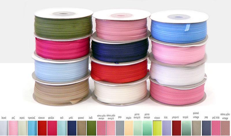 Κορδέλα Γκρο σε διάφορες αποχρώσεις με διάσταση 0.3 εκ x 46 μέτρα.