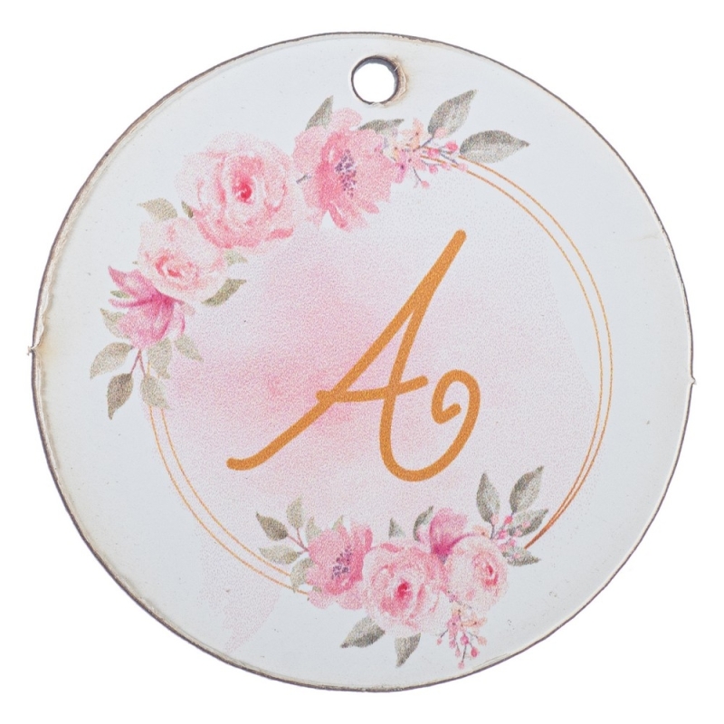 Ξύλινα Αντικείμενα | Μονόγραμμα ρόζ εκτυπωμένο 7εκ ΝΒ587