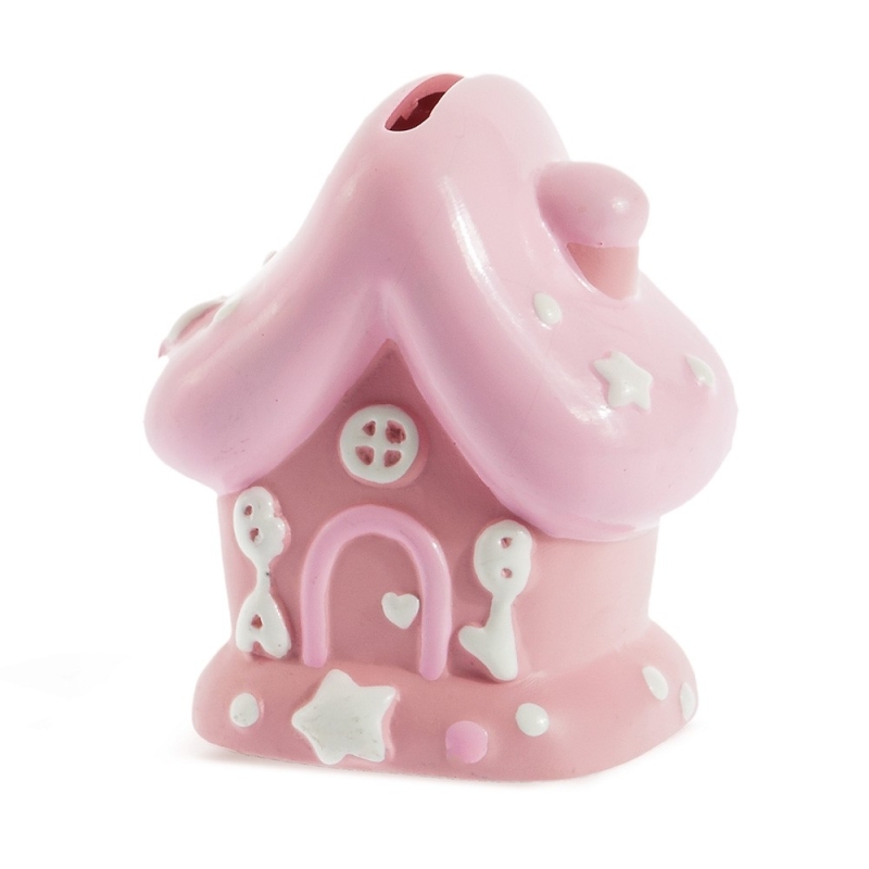 Πολυεστερικός παιδικός κουμπαράς σπιτάκι ροζ