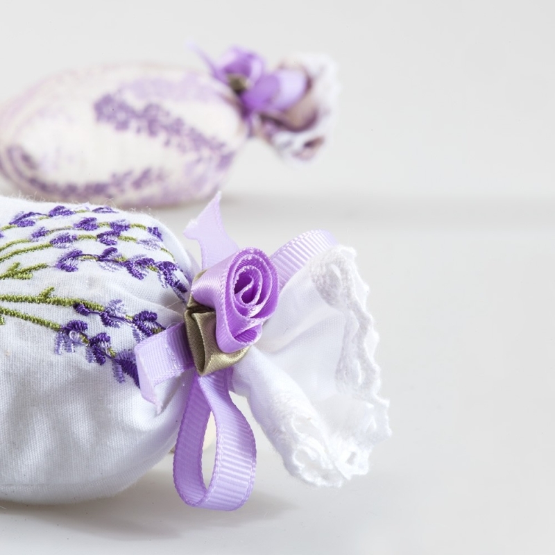 Υφασμάτινο μεγάλο πουγκί με άρωμα λεβάντα σε λιλά αποχρώσεις. Ο κωδικός περιλαμβάνει 2 σχέδια τα οποία είναι στολισμένα με ένα λουλουδάκι. Η συσκευασία περιλαμβάνει 12 τεμάχια.