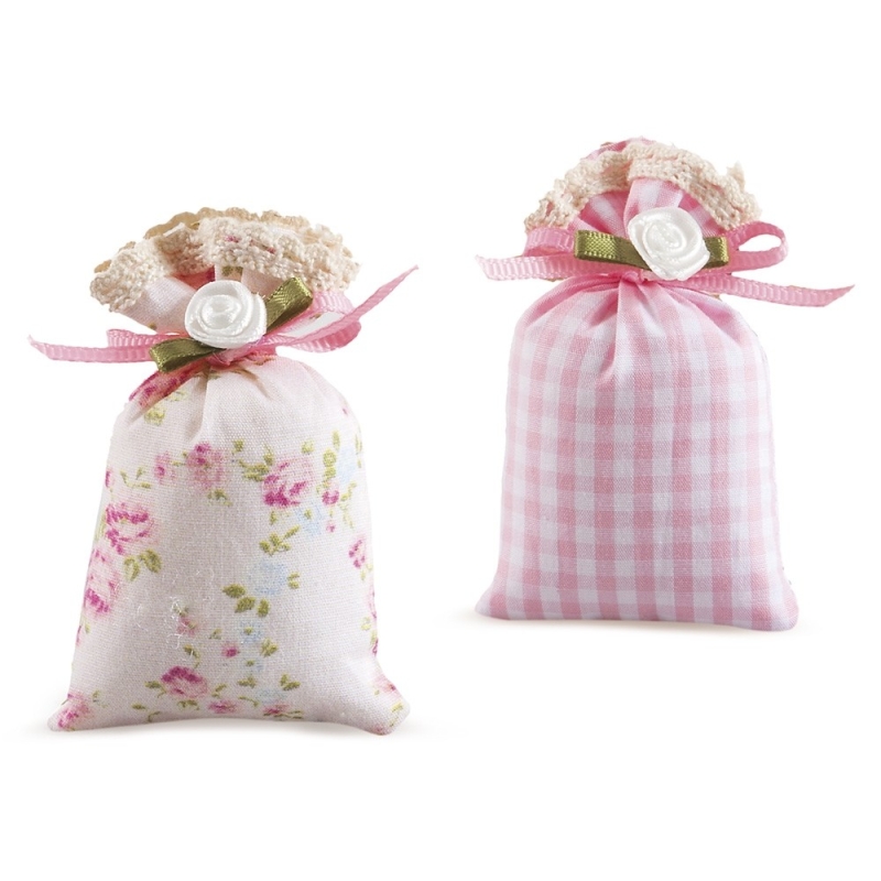 Υφασμάτινο μικρό πουγκί με άρωμα τριαντάφυλλο σε ροζ αποχρώσεις. Ο κωδικός περιλαμβάνει 2 σχέδια τα οποία είναι στολισμένα με ένα λουλουδάκι. Η συσκευασία περιλαμβάνει 12 τεμάχια.