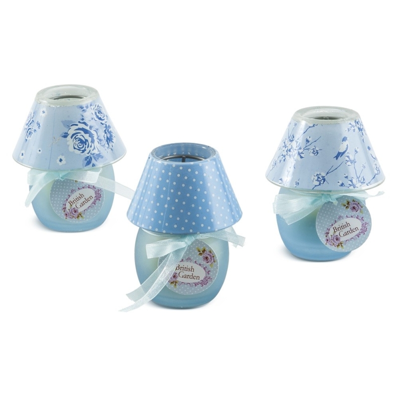 Διακοσμητικό κερί σε σχήμα φωτιστικού σε σιελ χρώμα. Ο κωδικός περιλαμβάνει 3 διαφορετικά σχέδια καπέλου στο φωτιστικό.