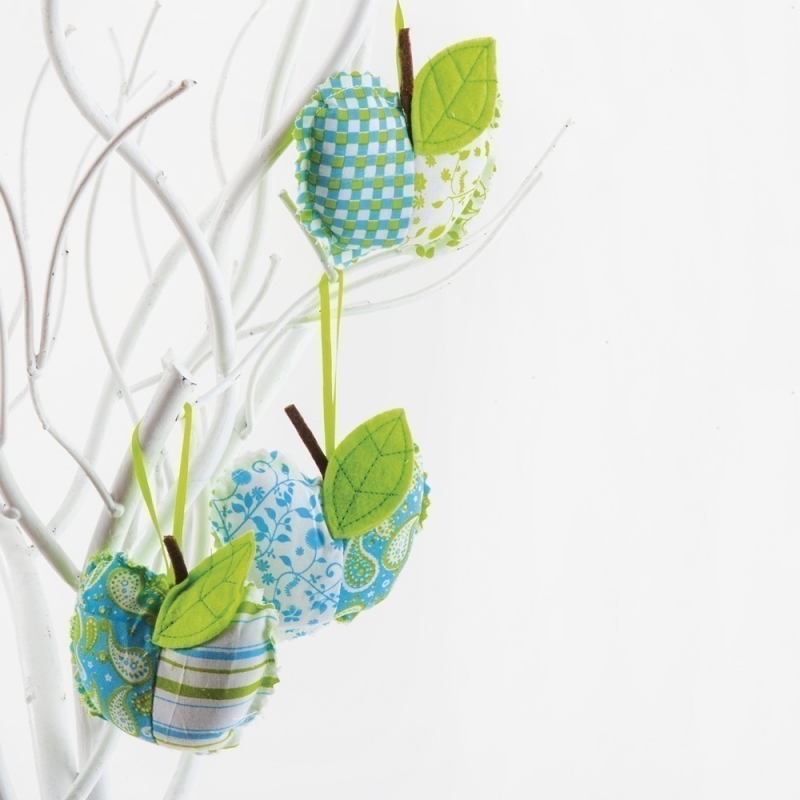 Υφασμάτινο διακοσμητικό κρεμαστό μήλο σε αποχρώσεις του πράσινο και του μπλε με πράσινο φύλλο από τσόχα. Ο κωδικός περιλαμβάνει 3 σχέδια.