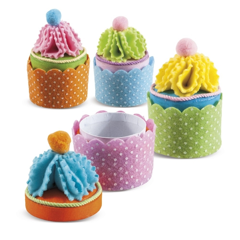 Τσόχινo πολύχρωμo διακοσμητικό κουτάκι σε σχήμα cupacke. Ο κωδικός περιλαμβάνει 4 σχέδια.