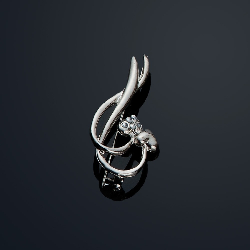 Μεταλλική διακοσμητική καρφίτσα με καμπύλη και λεπτομέρειες με λευκά στρας.