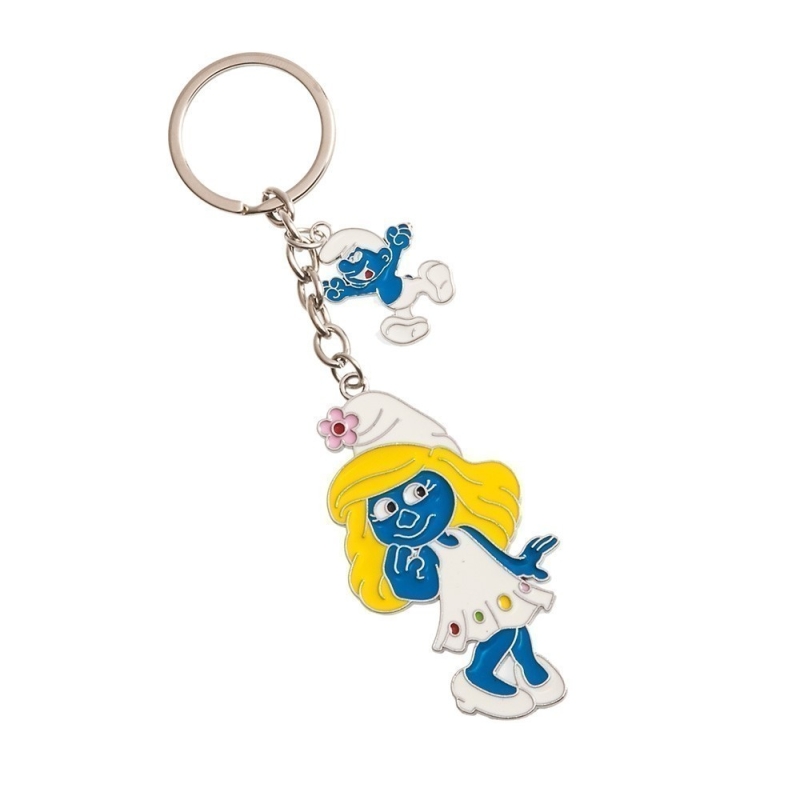 Μπρελόκ μεταλλικό παιδικό με στρουμφίτα και μοτίφ στρουμφάκι, ιδανικό για διακοσμήσεις και κατασκευές