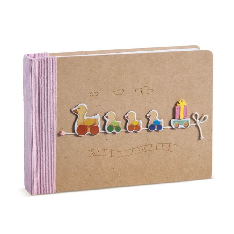 Παιδικό βιβλίο ευχών εκρού-ροζ με παράσταση παπάκια με κουτί συσκευασίας