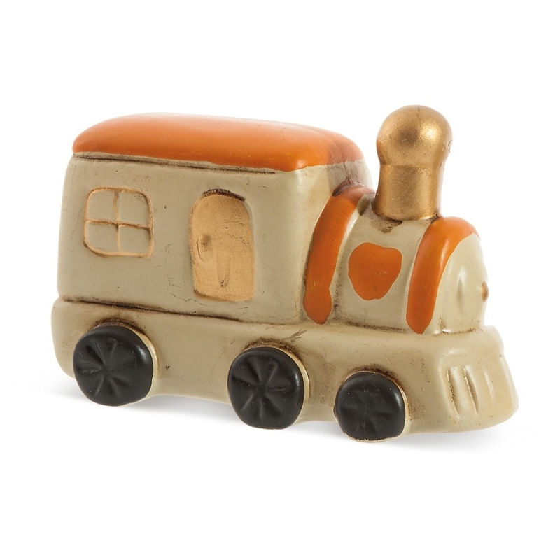 Κεραμικό διακοσμητικό παιδικό τρενάκι εκρού-πορτοκαλί