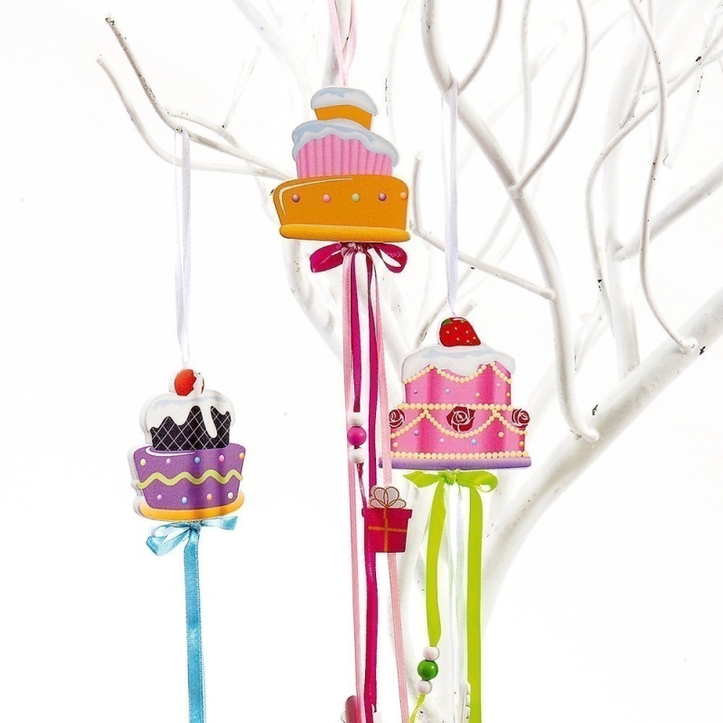 Ξύλινα παιδικά πολύχρωμα διακοσμητικά κρεμαστά με σχέδιο cupcake. Ο κωδικός περιλαμβάνει 3 σχέδια.
