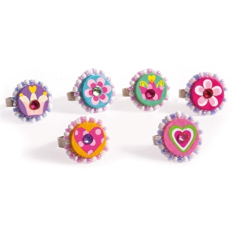 Μεταλλικό παιδικό διακοσμητικό δαχτυλίδι με διάφορα ξύλινα διακοσμητικά σχέδια. Ο κωδικός περιλαμβάνει 6 σχέδια.Στη συσκευασία του υποκιβωτίου των 144τμχ περιλαμβάνεται και η βιτρίνα παρουσίασης με τον καθρέπτη