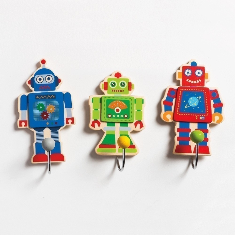 Ξύλινη παιδική πολύχρωμη κρεμάστρα ρομπότ. Ο κωδικός περιλαμβάνει 3 σχέδια