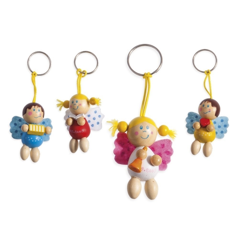 Ξύλινο παιδικό πολύχρωμο μπρελόκ με αγγελάκια,κατάλληλο και ως διακοσμητικό. Ο κωδικός περιλαμβάνει 4 σχέδια