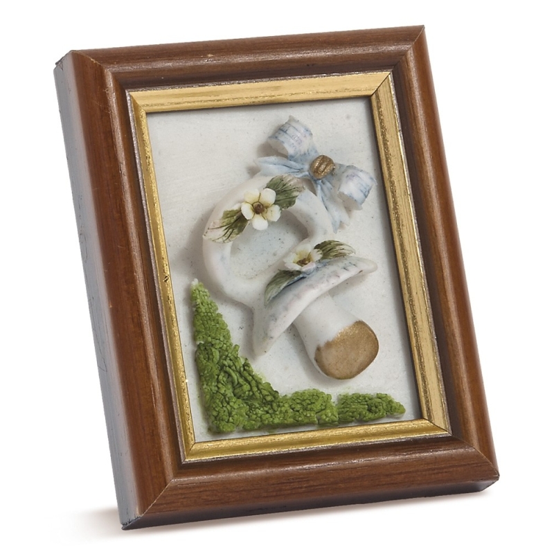 Ξύλινο καδράκι κρεμαστό και με στήριγμα από πίσω με πιπίλα σιέλ από πορσελάνη