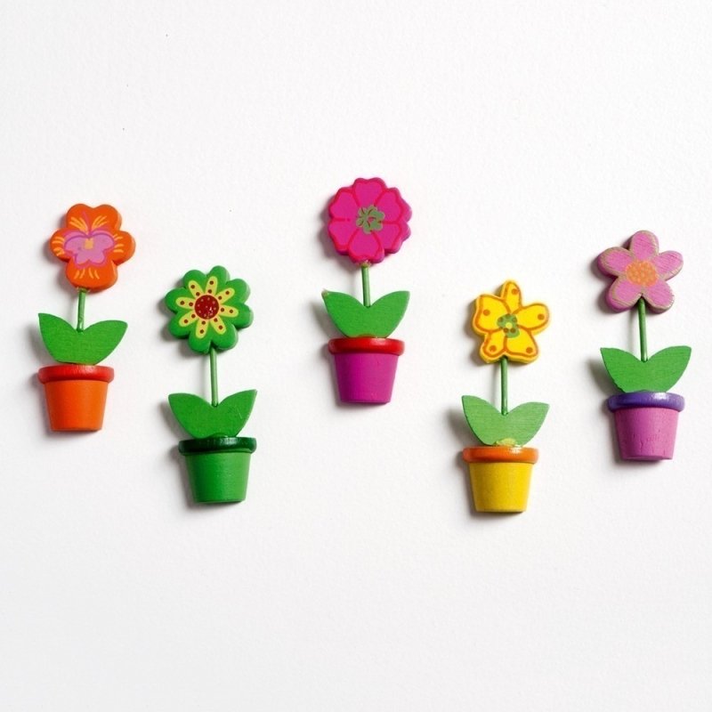 Ξύλινο αυτοκόλλητο γλαστράκι για διακόσμηση σε συσκευασία των 24τμχ. Ο κωδικός περιλαμβάνει 5 σχέδια στο γλαστράκι