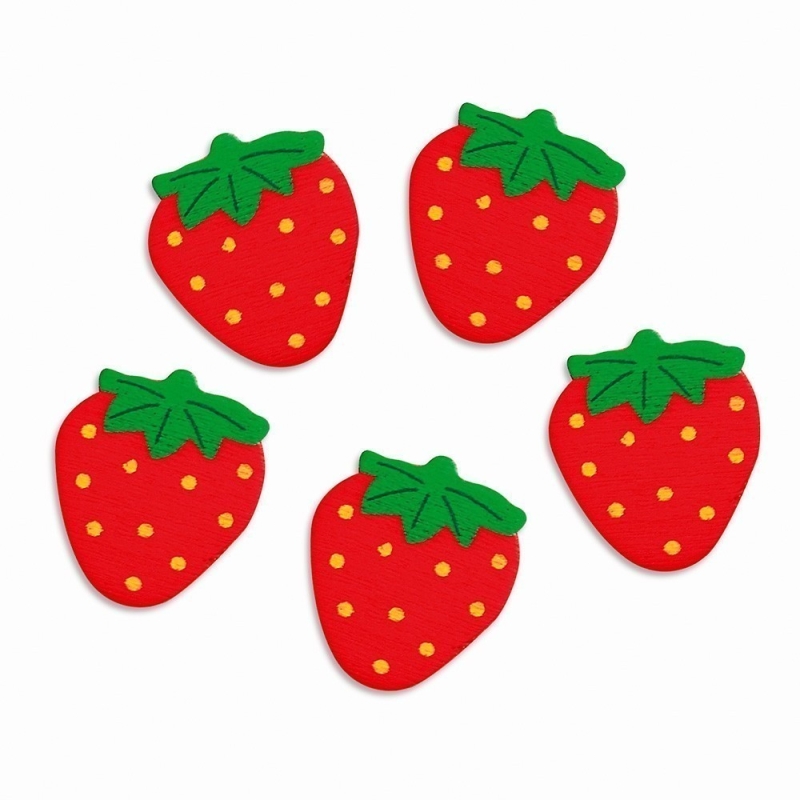 Ξύλινο αυτοκόλλητο φραουλίτσα κόκκινη για διακόσμηση και κατασκευές σε συσκευασία των 24τμχ.