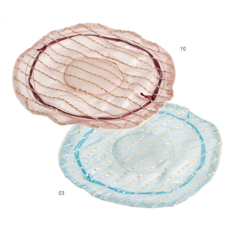 Μαντήλι σουρωτό στρογγυλό από οργάντζα με ρίγες σατέν εκρού και με εσωτερική επένδυση σατέν