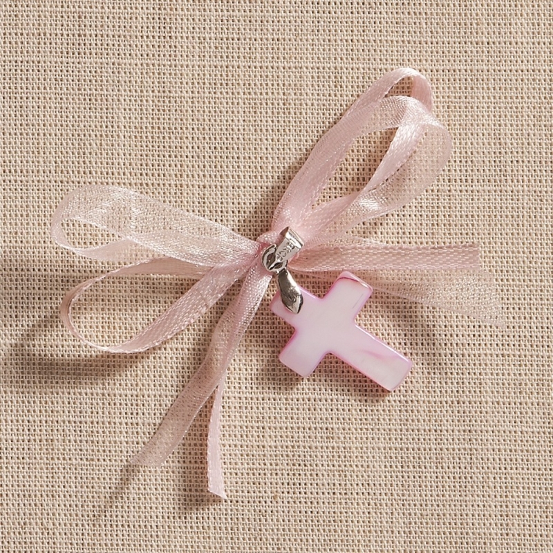 Μαρτυρικό με φίλντισι ροζ δεμένο με κορδέλα οργάντζα και σατέν ροζ.