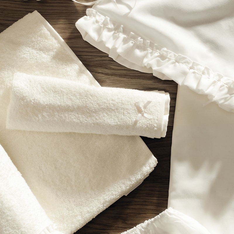 Σετ λαδόπανα βάπτισης για κορίτσι σε εκρού χρώμα με δαντελίτσα. Στο σετ περιλαμβάνεται το λαδόπανο, τα εσώρουχα,η πετσέτα η μεγάλη και η μικρή των χεριών