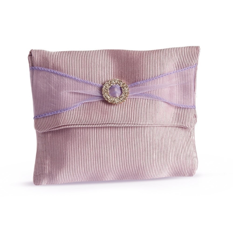 Φάκελος γκρό λιλά με αγκράφα με στρας και οργάντζα λιλά