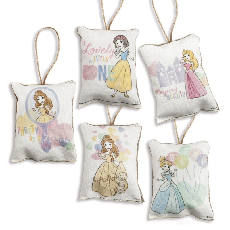 Disney υφασμάτινο διακοσμητικό μαξιλάρι κρεμαστό, print με παιδική παράσταση princess και το λογότυπο της Disney. Ο κωδικός περιλαμβάνει 5 σχέδια